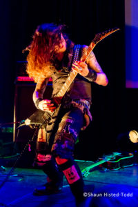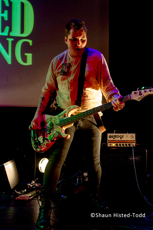 all is taken in good spirits and we are quickly propelled into the set. They look great and fit the part well and you could really believe these are punks from an altered bygone Victorian era. The tunes come fast and elegantly as we are treated to older classics from the first and second albums – Charlie, Steph(v)enson, Victoria’s Secret, The Great Stink, and Poor Georgie as well as a host of songs from their latest album – Not Your Typical Victorians – which as I’ve just purchased were all very new to me except for the current single – This House Is Not Haunted – but even though the new songs are fresh to my ears they equally sounding powerful and tight. As Andy swaggers back and forth across the stage at times I spot that imposing and menacing frontman, remembered from Creaming Jesus days, but mostly I see a different Andy here tonight with smiles of mirth and a character played out that steals the Steampunk genre brilliantly. Marc wields and thumbs out the bass as he straddles and leaps from one spot to another; Andrew thrashes and strums his axe like a metal warrior as Jezz kicks out the beats. At one point during the set the band leaves the stage leaving it open for Marc to present to us an acoustic track – Princess Charlotte – from his own side project (Before Victoria), given the rest a break from the stage before rejoining us for more steamblasting. As the night draws to the end, we get three more songs on the encore – Brunel – Victoria and Margate FHTAGN. A fantastic show performed by these Gents, hats off and I look forward to the next time.